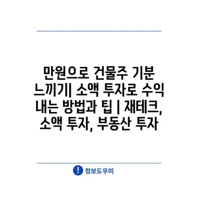 만원으로 건물주 기분 느끼기| 소액 투자로 수익 내는 방법과 팁 | 재테크, 소액 투자, 부동산 투자