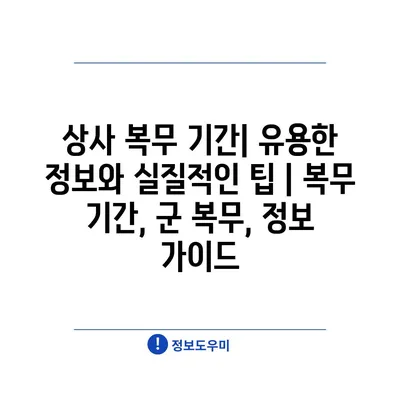 상사 복무 기간| 유용한 정보와 실질적인 팁 | 복무 기간, 군 복무, 정보 가이드