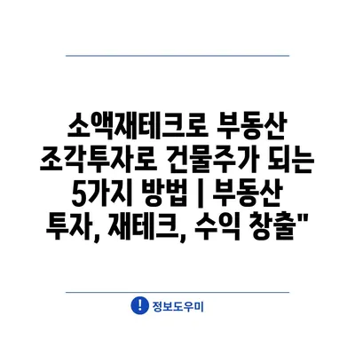 소액재테크로 부동산 조각투자로 건물주가 되는 5가지 방법 | 부동산 투자, 재테크, 수익 창출”