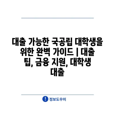 대출 가능한 국공립 대학생을 위한 완벽 가이드 | 대출 팁, 금융 지원, 대학생 대출