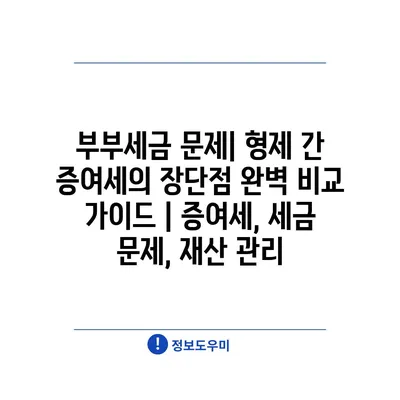 부부세금 문제| 형제 간 증여세의 장단점 완벽 비교 가이드 | 증여세, 세금 문제, 재산 관리