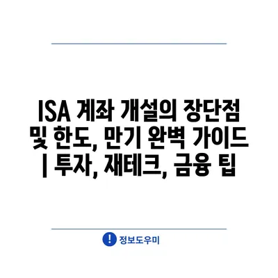 ISA 계좌의 장단점, 한도, 만기 기간 완벽 가이드 | 투자, 재테크, 절세 전략”