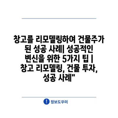 창고 투자로 건물주 성공 사례 소개| 효과적인 투자 전략과 실천 팁 | 창고 투자, 부동산 성공, 투자 전략”