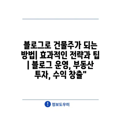 블로그로 건물주가 되는 방법| 효과적인 전략과 팁 | 블로그 운영, 부동산 투자, 수익 창출”