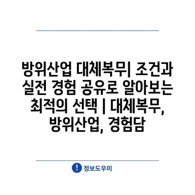 방위산업 대체복무| 조건과 실전 경험 공유로 알아보는 최적의 선택 | 대체복무, 방위산업, 경험담