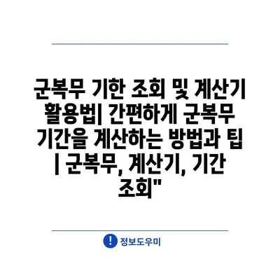 군복무 기한 조회 및 계산기 활용법| 간편하게 군복무 기간을 계산하는 방법과 팁 | 군복무, 계산기, 기간 조회”