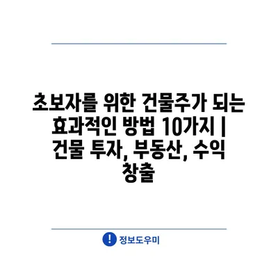 초보자를 위한 건물주가 되는 효과적인 방법 10가지 | 건물 투자, 부동산, 수익 창출