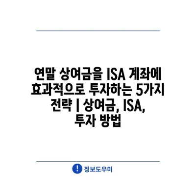 연말 상여금을 ISA 계좌에 효과적으로 투자하는 5가지 전략 | 상여금, ISA, 투자 방법