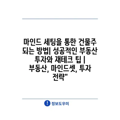 마인드 세팅을 통한 건물주 되는 방법| 성공적인 부동산 투자와 재테크 팁 | 부동산, 마인드셋, 투자 전략”